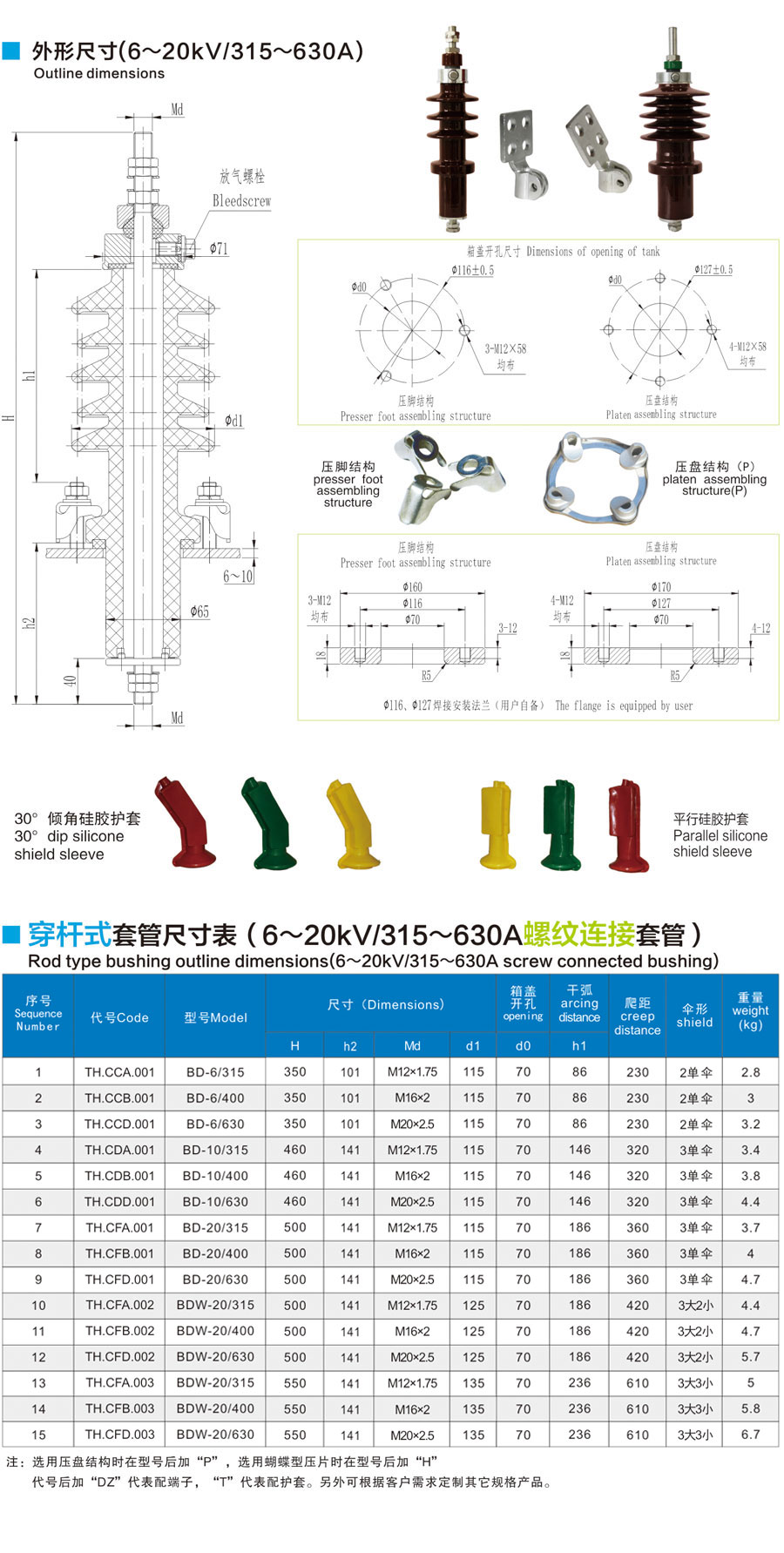 DIN standard bushing 1-52kV