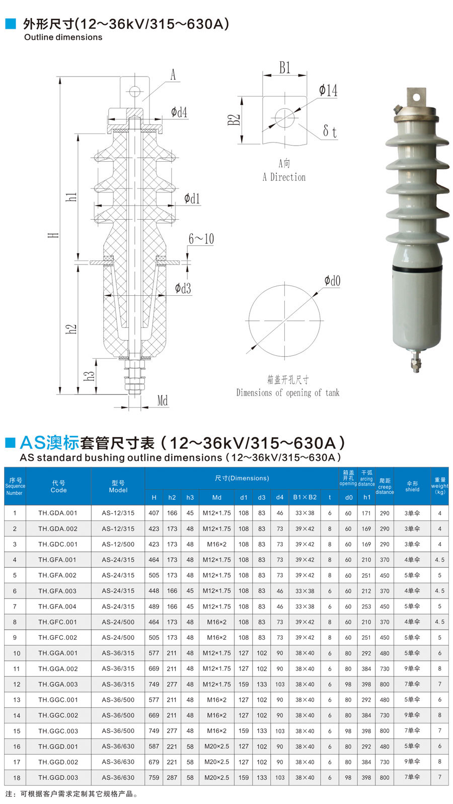 AS澳標(biāo)套管12~3kV/315~630A