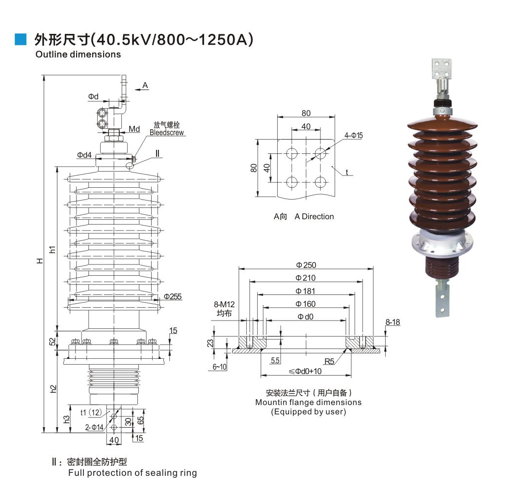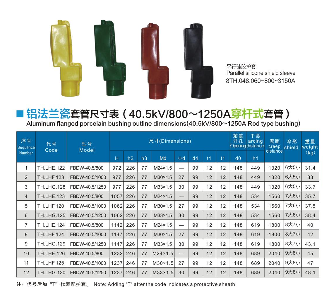 鋁法蘭瓷套管40.5kV/800~1250A穿桿式套管