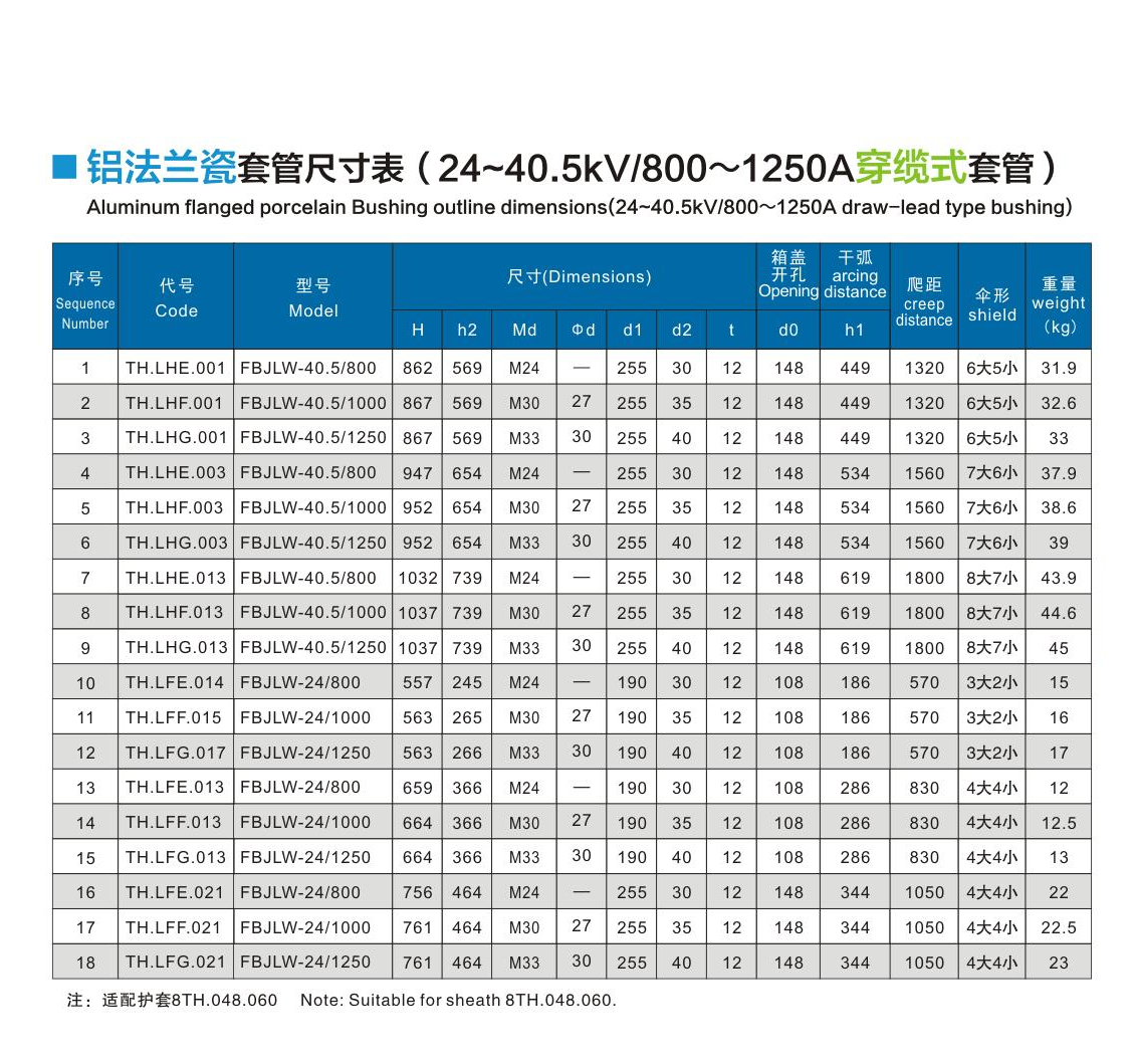 鋁法蘭瓷套管24~40.5kV/800~1250A穿纜式套管