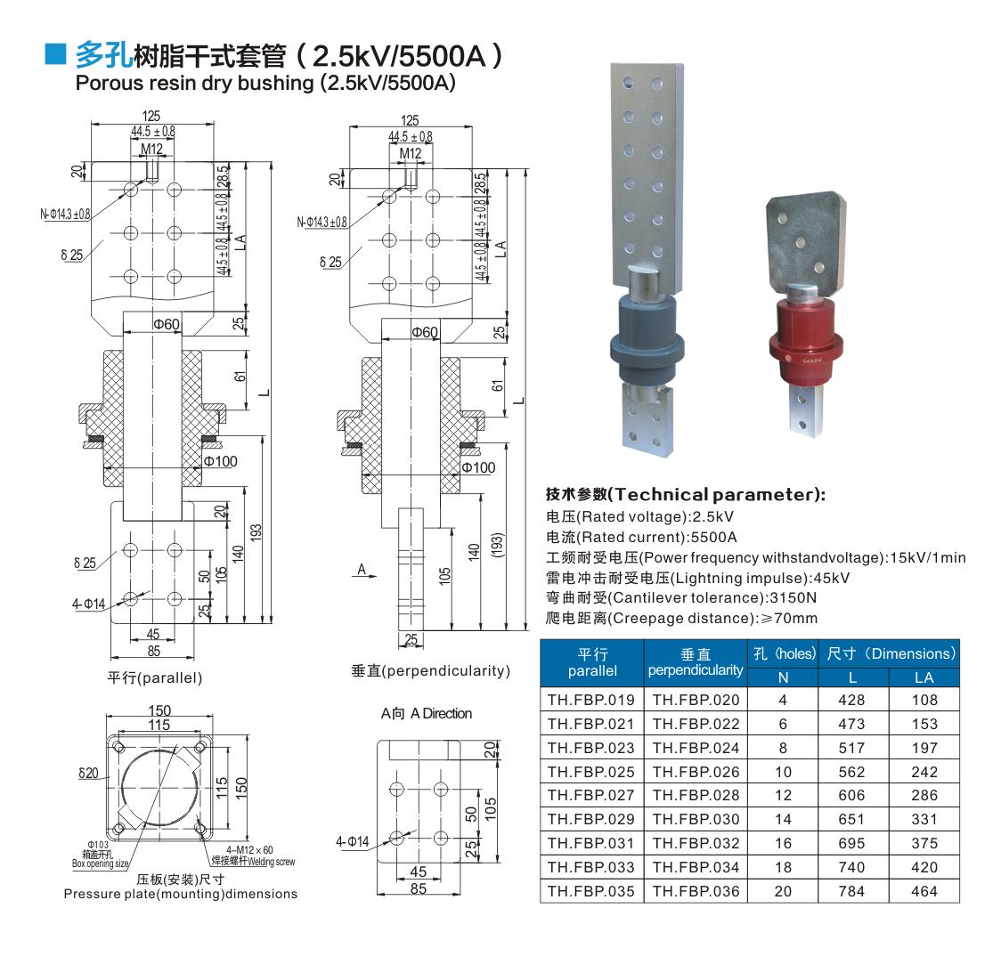多孔樹(shù)脂干式套管2.5kV/5500A
