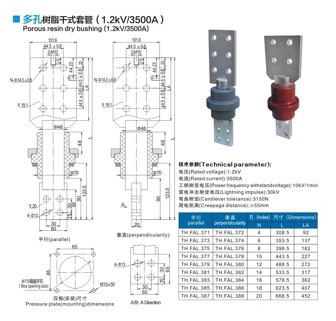 多孔樹(shù)脂干式套管1.2kV/3500A