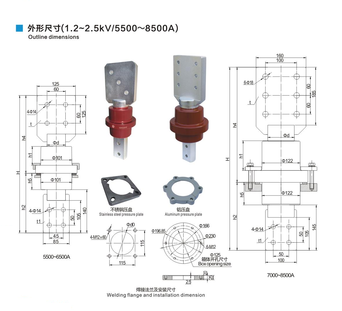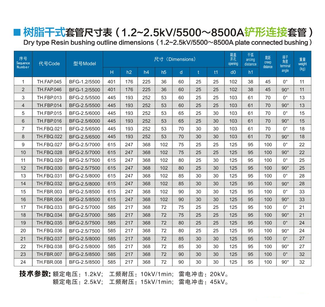 樹脂干式套管1.2~2.5kV/5500~8500A鏟形連接套管
