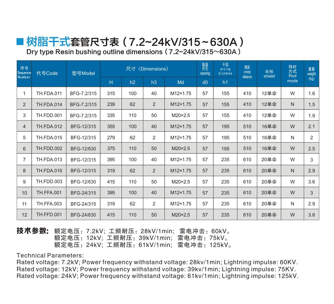 樹脂干式套管12~24kV/315~630A
