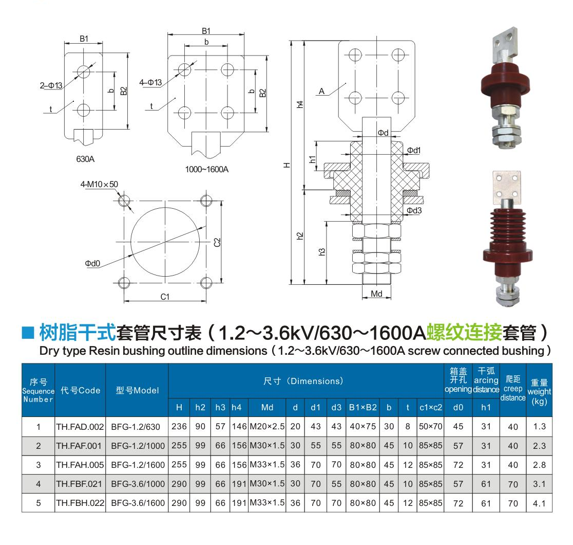 樹(shù)脂干式套管1.2~3.6kV/630~1600A螺紋連接套管