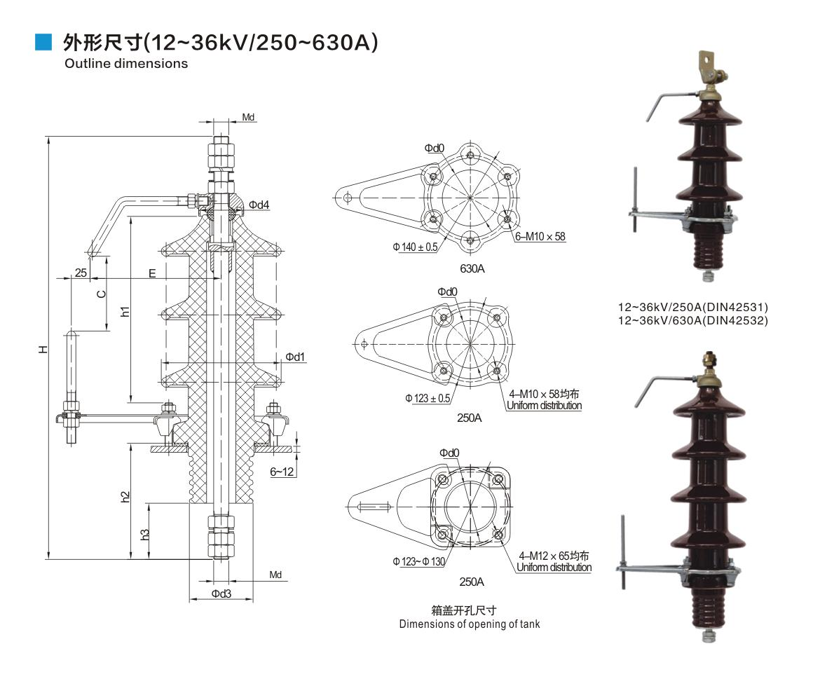 DIN德標(biāo)套管12~36kV/250~630A穿桿式套管