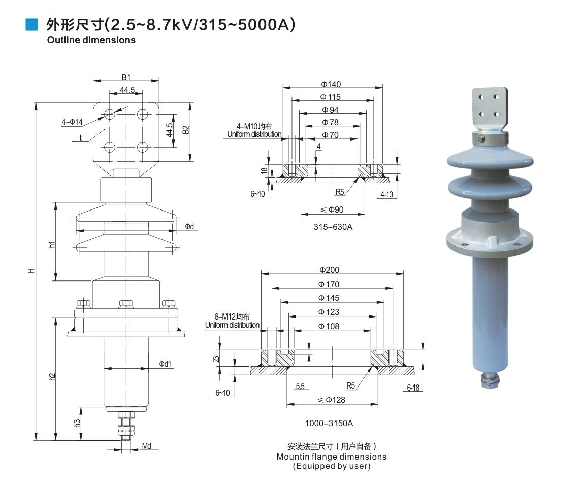 美標(biāo)套管2.5~8.7kV/315~5000A