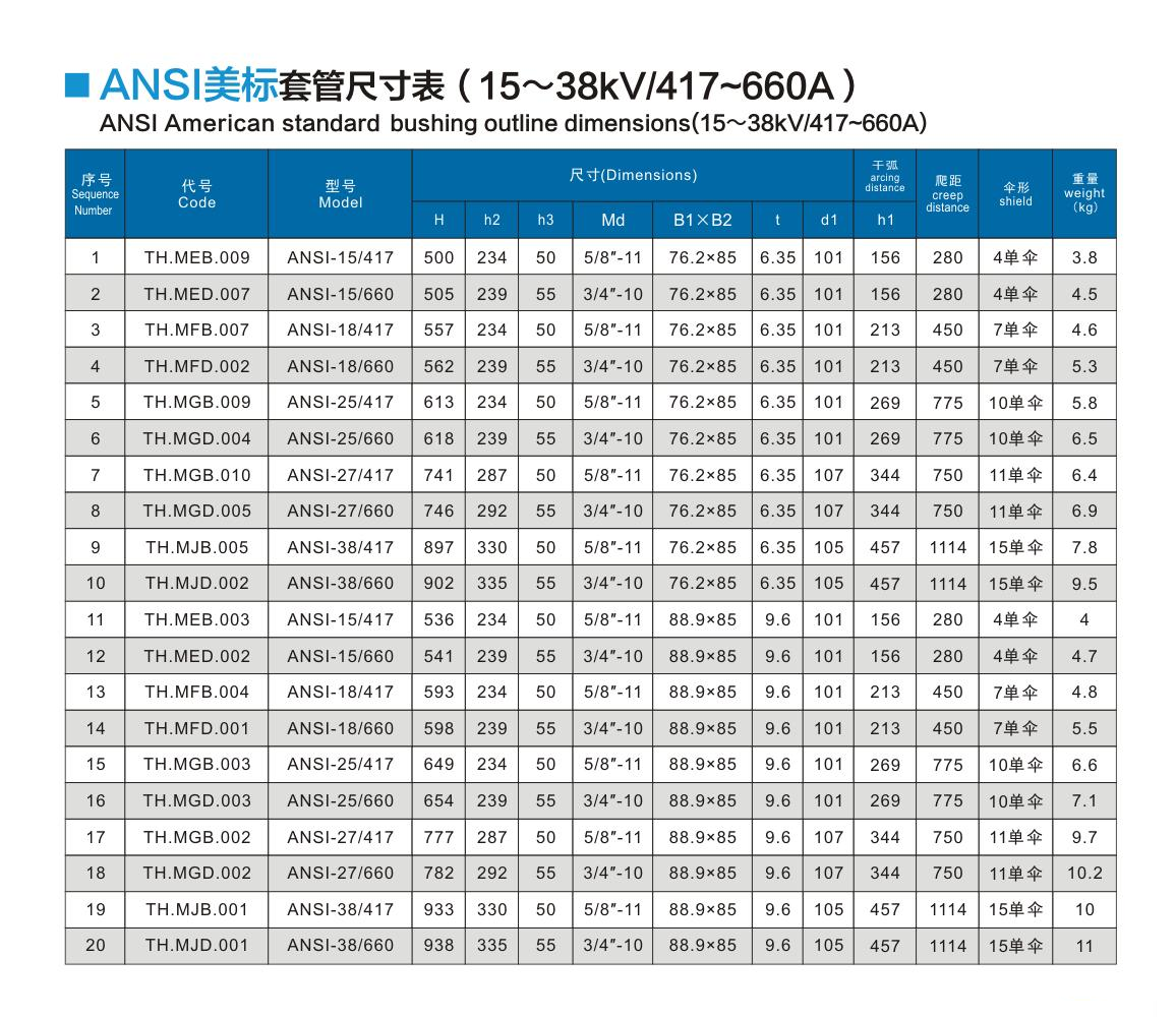 ANSI美標(biāo)套管15~38kV/417~660A