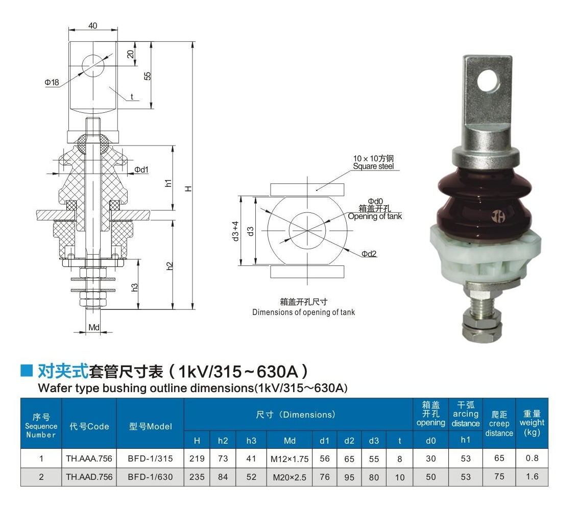 對(duì)夾式套管1kV/315~630A