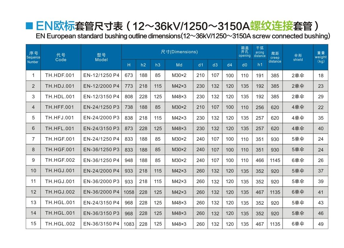 EN歐標套管12~36kV/1250~3150A螺紋連接套管