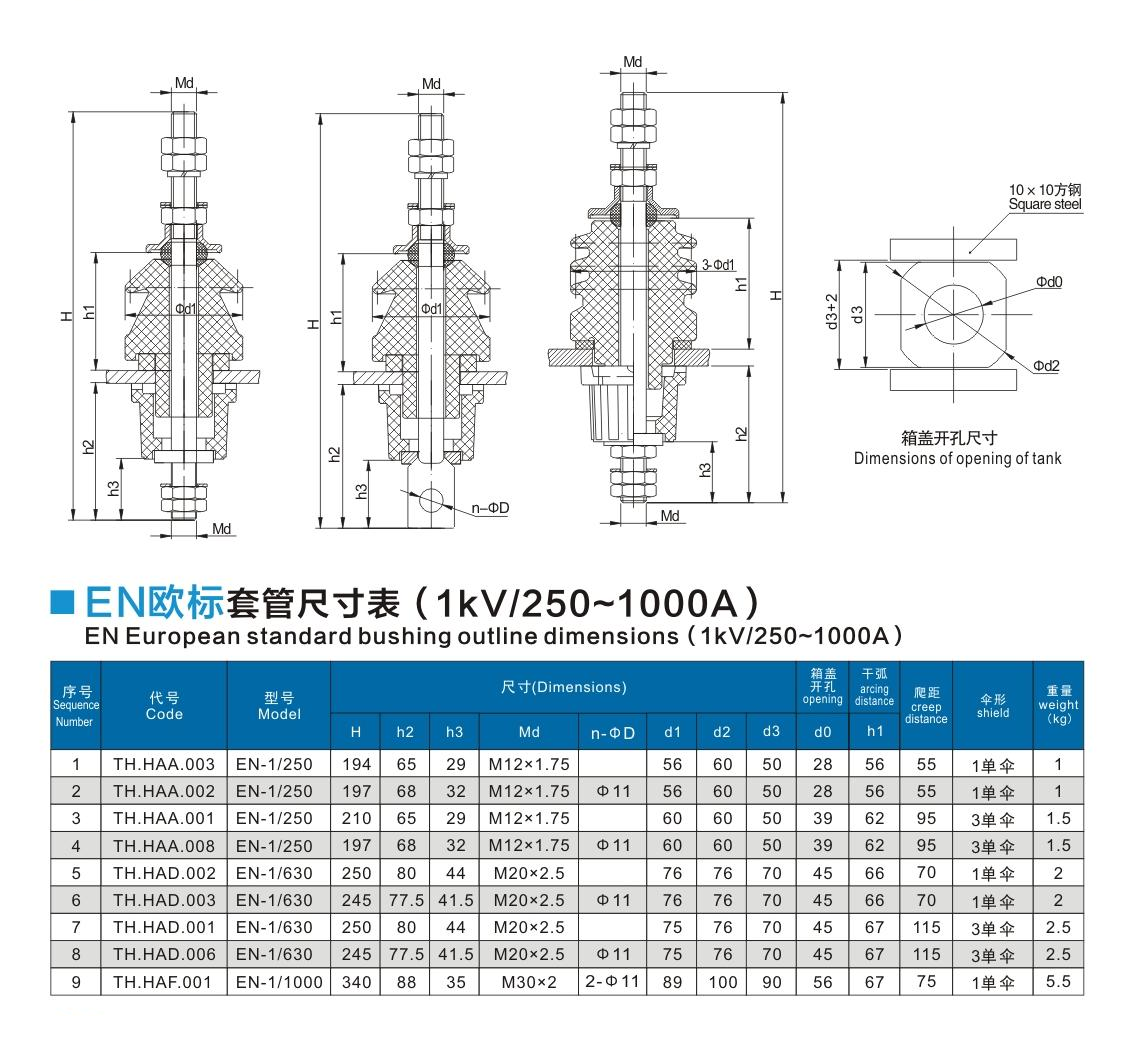 EN歐標(biāo)套管1kV/250~1000A